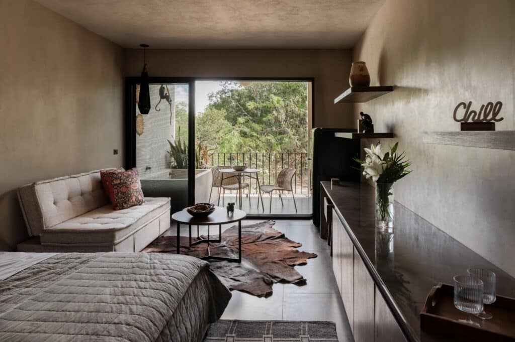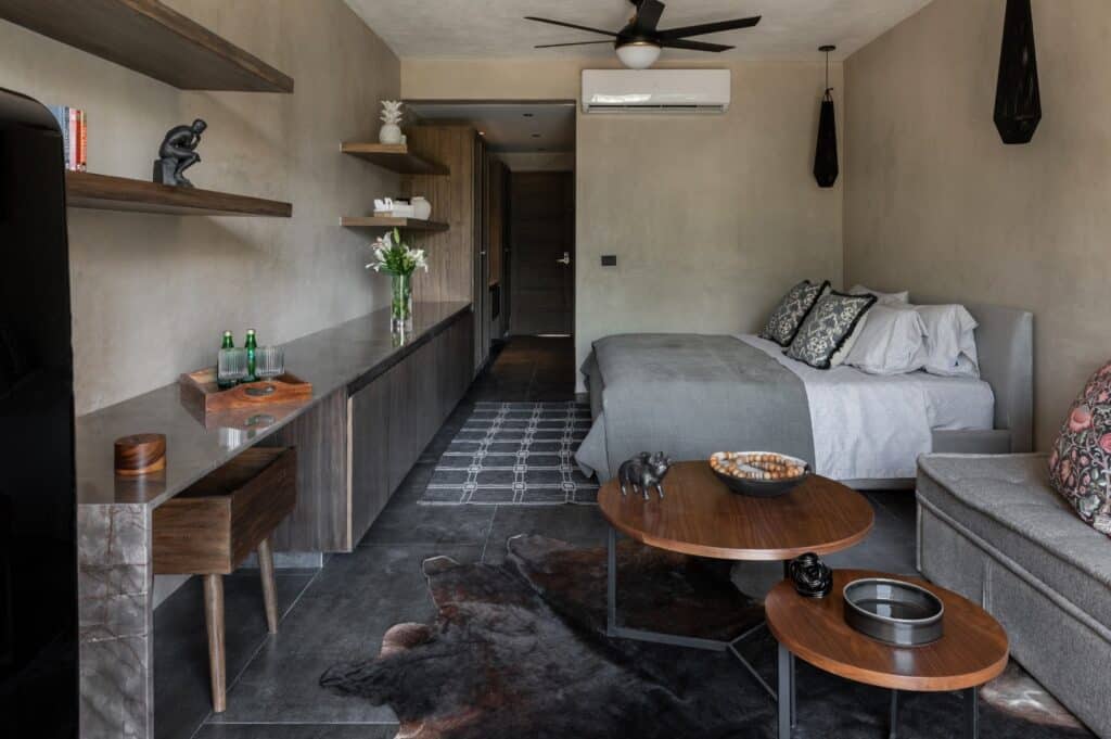 The hotel boasts six exquisite two-bedroom apartments spanning 845 square feet (78.5 m²). These apartments feature a versatile lock-off capability, making them perfect for optimizing rental potential. Designed to harmonize with Tulum’s enchanting natural landscape, each apartment is a sanctuary of comfort and style, embodying the “Tulum spirit” of appreciating nature, the outdoors, and the environment.